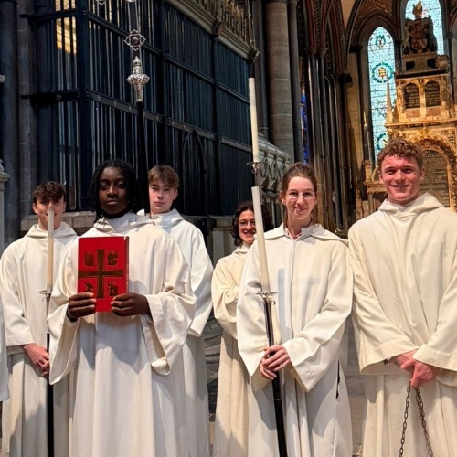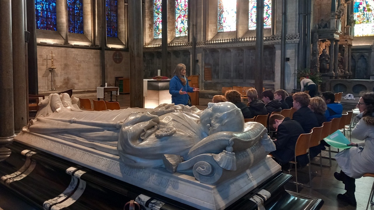 In Years 11-13, students move again, this time to the Cathedral Quire for collective worship entitled Cathedral Reflections. Once a half-term, these Reflections probe contemporary issues and student experience through the lens of faith. The same pattern of singing together and an opportunity to pray is offered. Some students choose to volunteer at the Cathedral in the Sixth Form. Many choose to return to the Cathedral after they have left. Cathedral Reflections offers a bridge for those who would like to do this to continue their relationship with faith and the Cathedral.